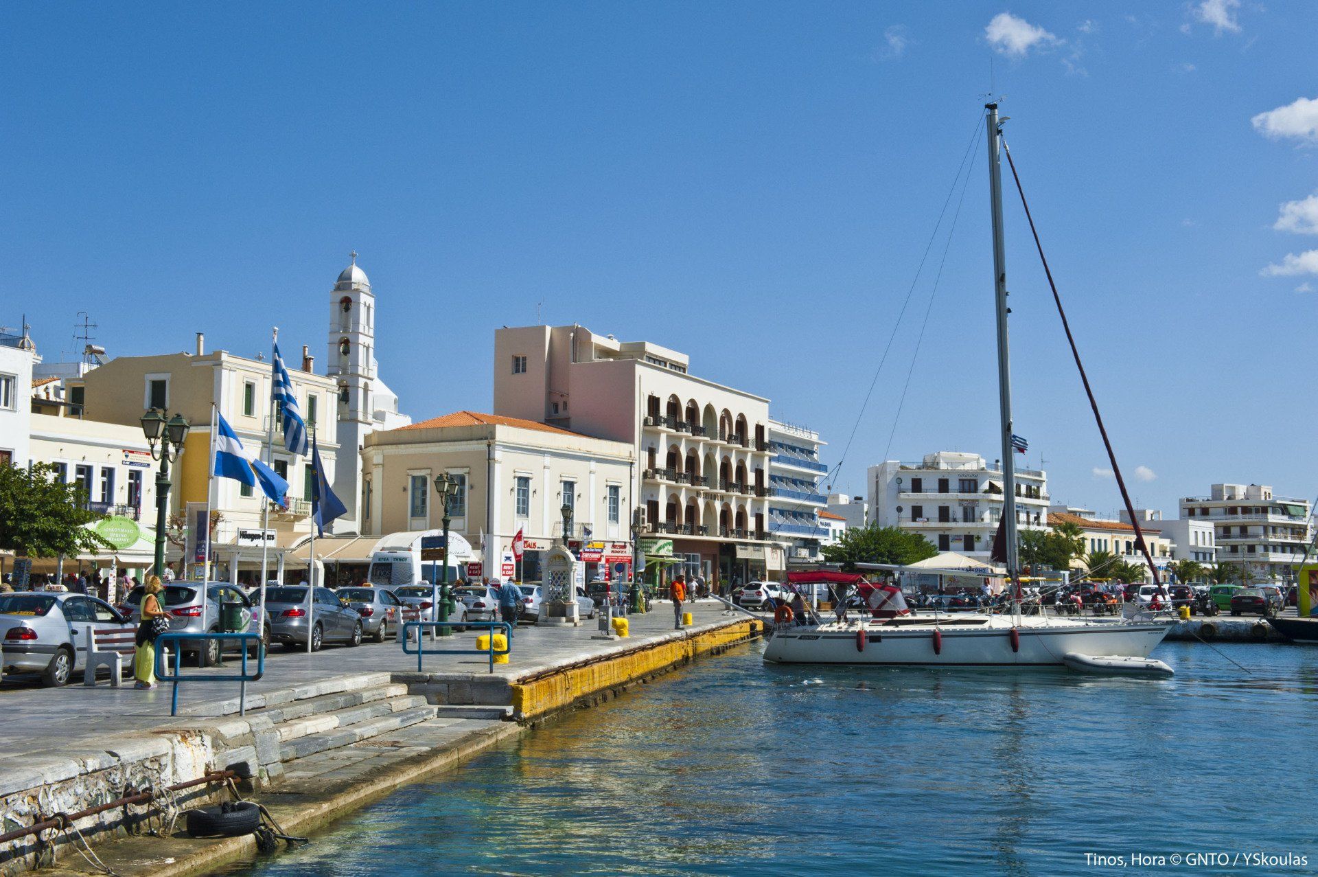 Pour la petite histoire au VIII ème siècle av JC, l’île fut dominée par Erétrie, une cité de la Grèce antique sur l’île d’Eubée, puis elle passa sous la domination d'Athènes. A la période médiévale la famille Ghisi l’acquit avant de passer sous la domination des Vénitiens. Aujourd’hui, elle est une des îles les plus méconnues des Cyclades. Et pourtant elle attire chaque année des milliers de pèlerins au 15 août. L’église de Panagia Megalochari ou Evangelistria (Notre Dame de l’Annonciation) est un haut lieu de pèlerinage. L’île a gardé sa tradition de sculpteurs de marbre et de peintres reconnus. Tinos possède de nombreuses beautés naturelles et d’importantes curiosités que beaucoup ignorent, car la plupart viennent pour le pèlerinage d’un jour. L’île regorge de plusieurs villages pittoresques et des paysages cycladiques authentiques dans l’arrière-pays, principalement montagneux, avec des localités traditionnelles, de nombreuses chapelles splendides, et les fameux pigeonniers. Tinos compte plus de mille pigeonniers (essentiellement des XVIIe et XVIIIe s.), qui constituent un important échantillon d’art populaire.